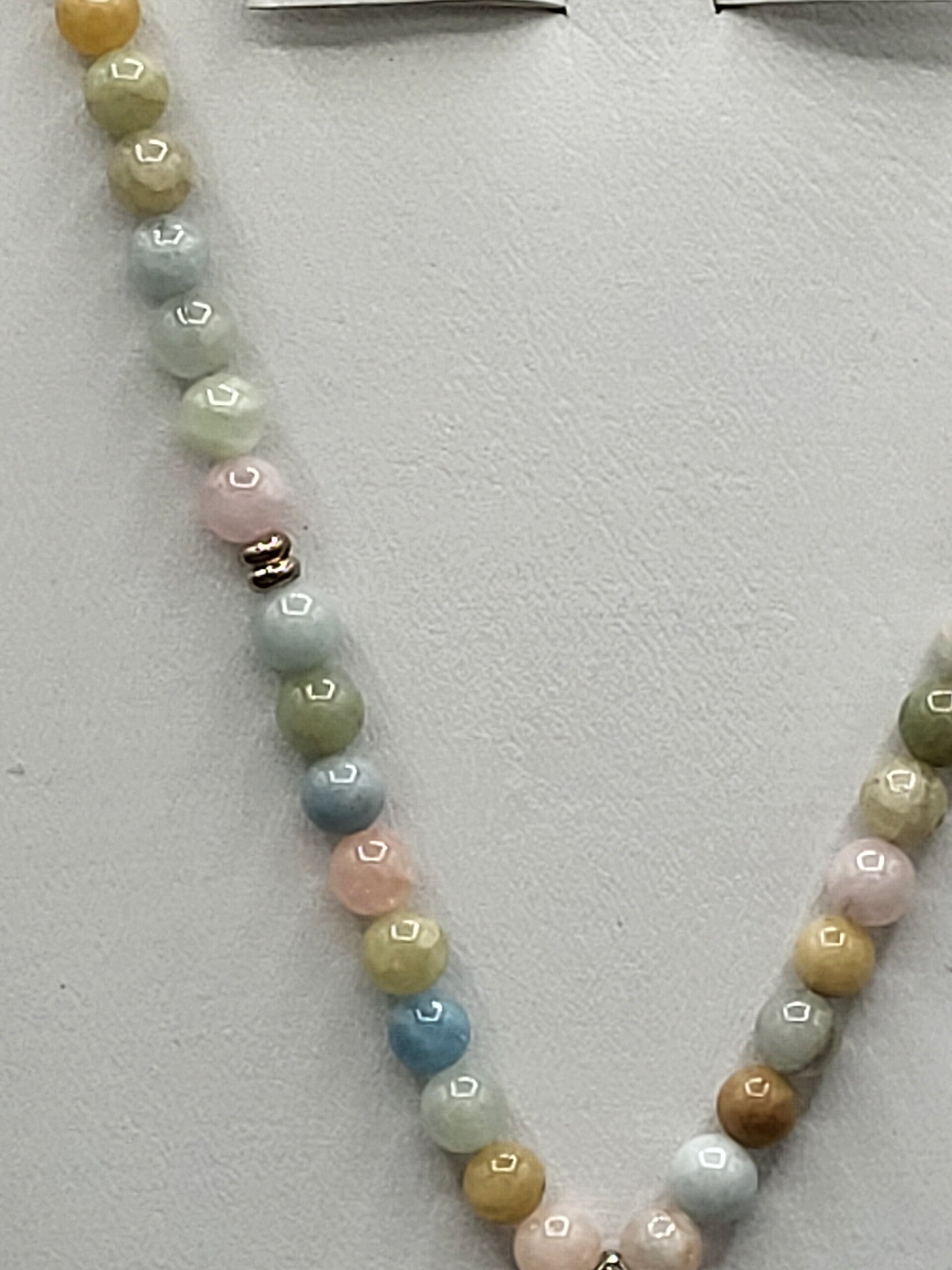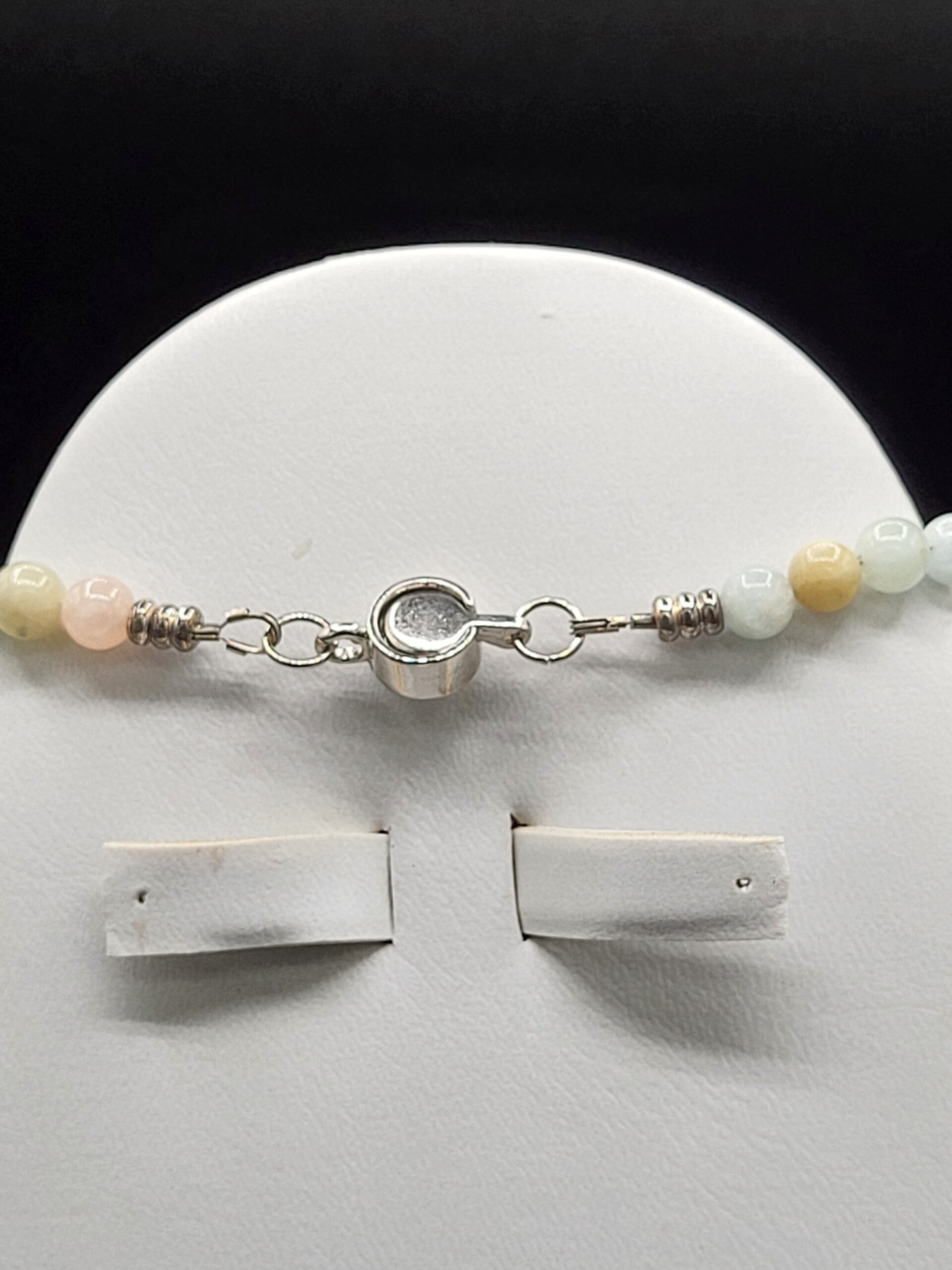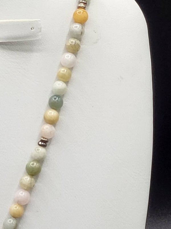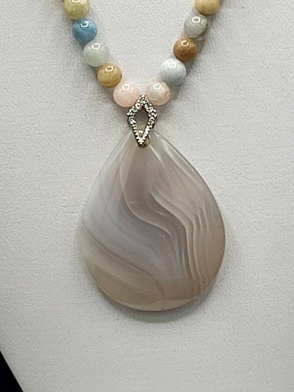 Botswana Agate Teardrop focal with pastel color Agate beads with silver plated accents. Magnet clasp.